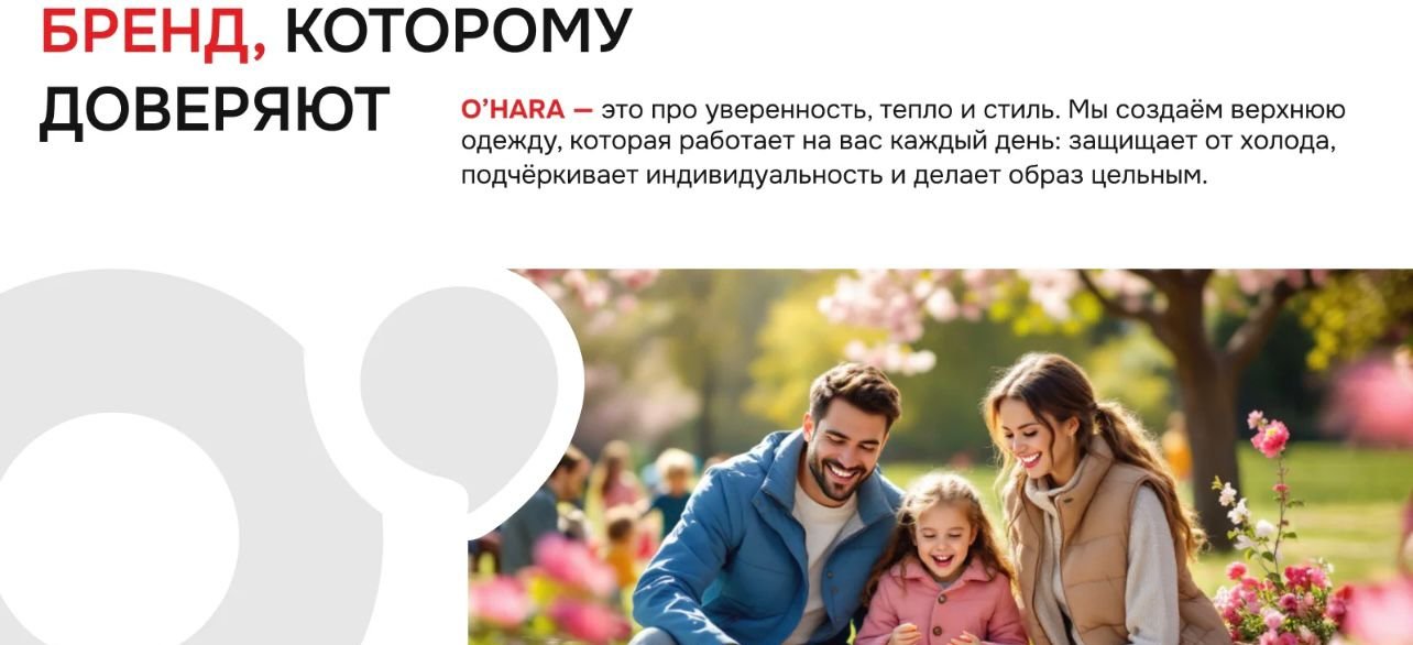 O’HARA — это динамично развивающаяся торговая сеть верхней одежды. На российском рынке мы уже более 20 лет. В настоящий момент сеть насчитывает более 160 магазинов в 50 городах России. Компания развивает 2 бренда - O'HARA и SNOWIMAGE.